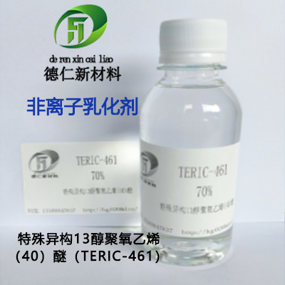 TERIC-461作为乳化剂特别适用于水性油墨乳液、水性光油乳液、胶粘剂、建筑乳液的聚合中。
